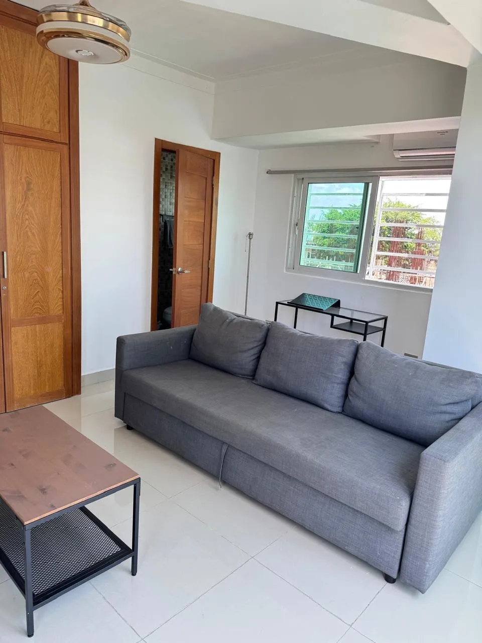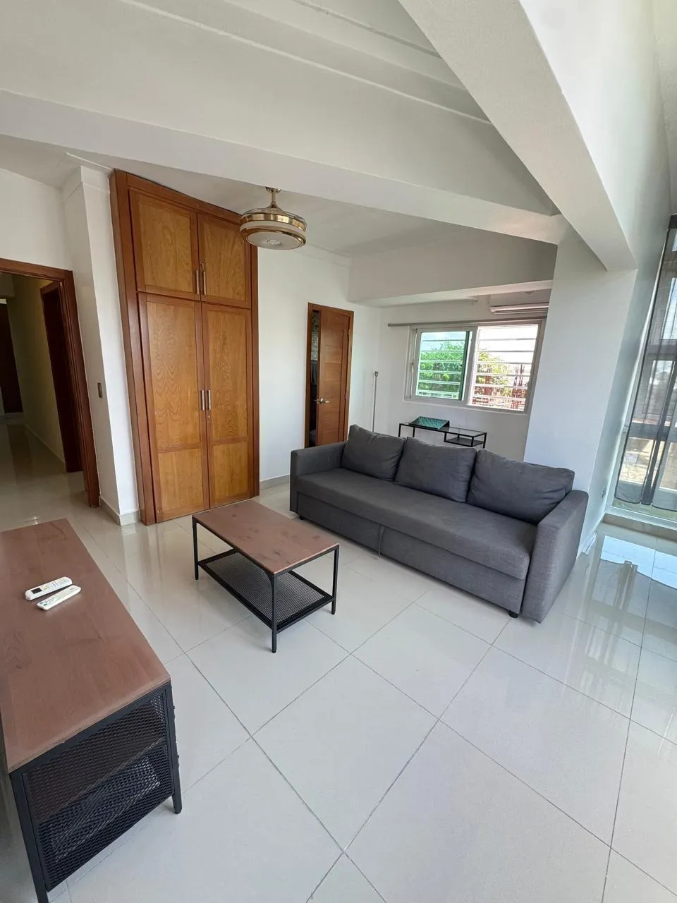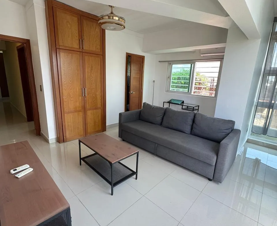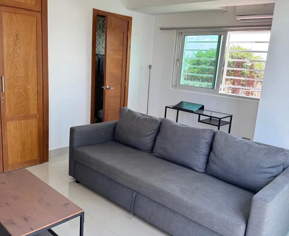 Tiene dos habitaciones, 1 baño, medio baño, pequeño estar familiar o área de trabajo. Una de las habitaciones puede ser estudio.