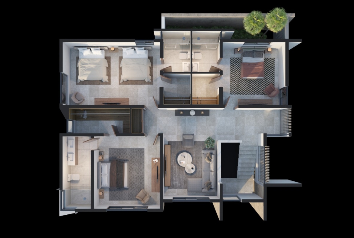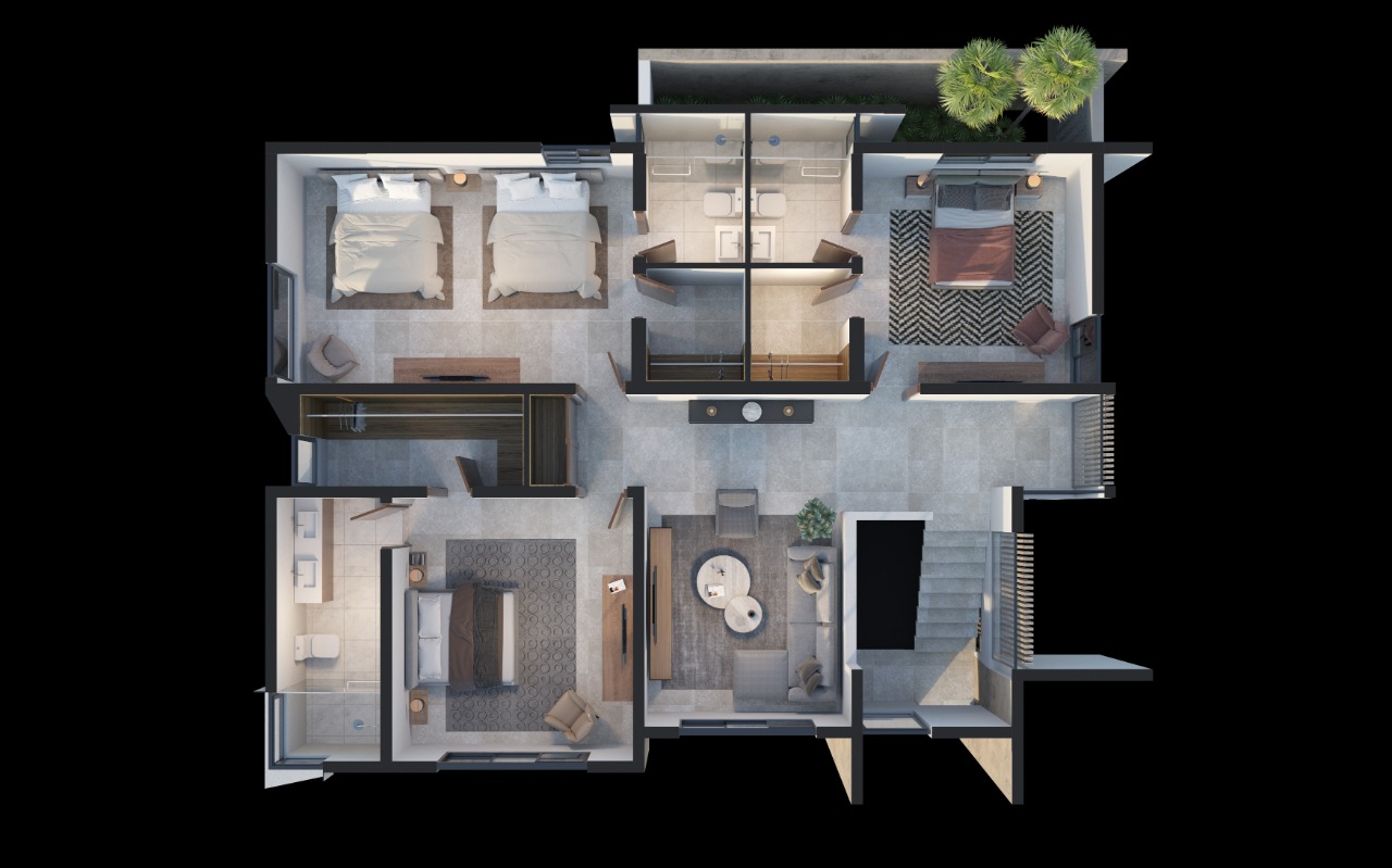 3 habitaciones con baños y walk-in closets,